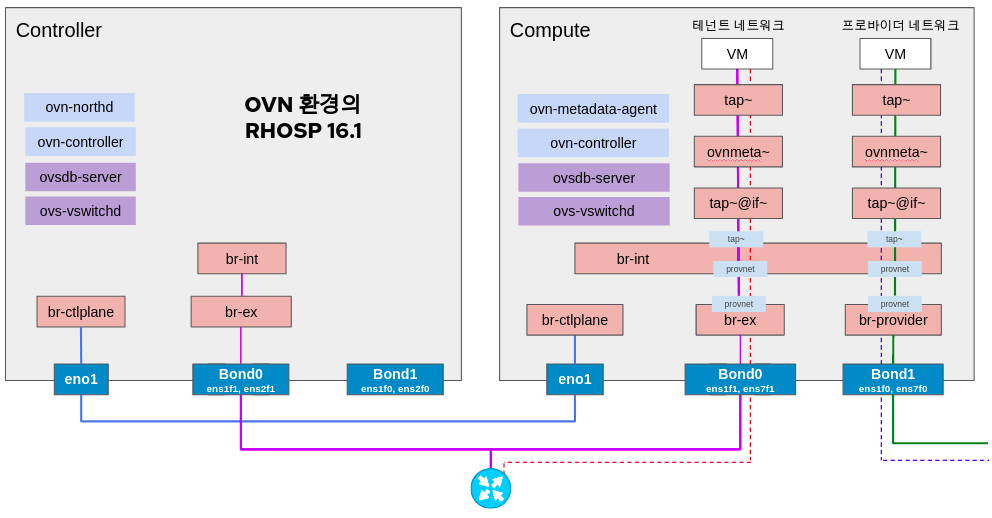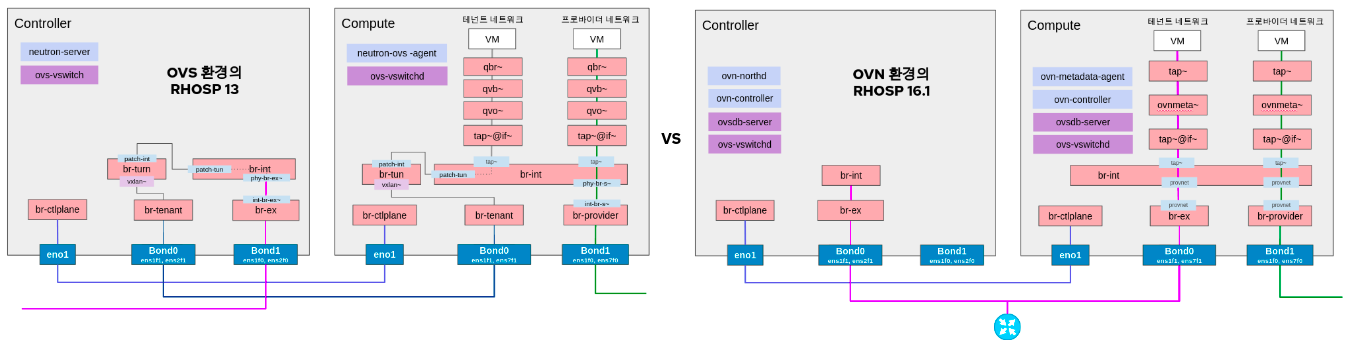 OVS 환경의 오픈스택 가상 네트워크 환경과 OVN 환경의 오픈스택 가상 네트워크 환경